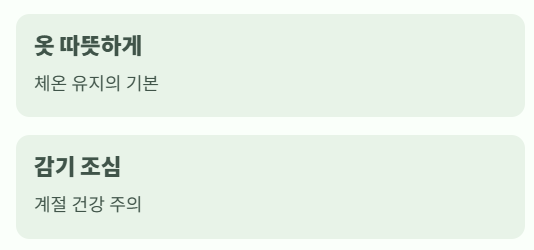 - 외출 시 장갑·목도리·내복 착용