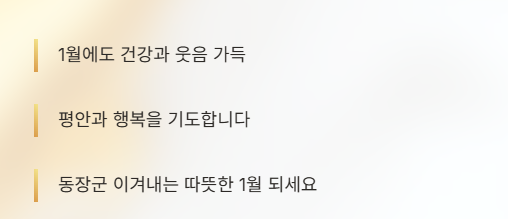 - 무탈한 1월 되시길 바라며, 평안과 건강이 함께하길 기도드립니다.