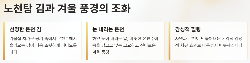 겨울은 특히 온천 + 숙박 + 식사 조합에서 만족도가 올라가는 시기다.
