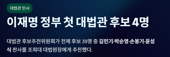 이재명 정부가 임명하는 첫 대법관 후보자가 4명으로 좁혀졌다.