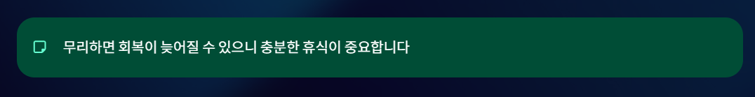 다만 무리하면 회복이 늦어질 수 있습니다.