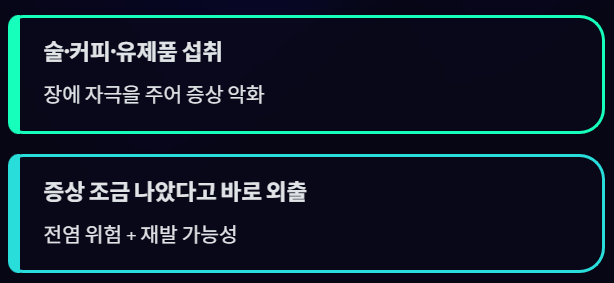=> 이 경우 핵심은 억지로 먹지 말고, 수분 보충 + 충분한 휴식