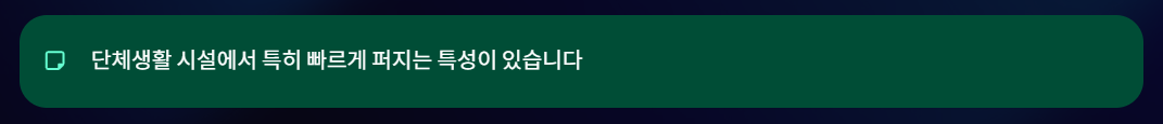 특히 단체생활, 어린이집·학교·요양시설 등에서 빠르게 퍼집니다.