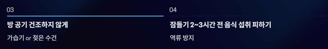 - 잠들기 2~3시간 전 음식 섭취 피하기