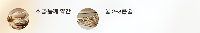 - 불 끄기 직전 들기름 나머지 반 큰술