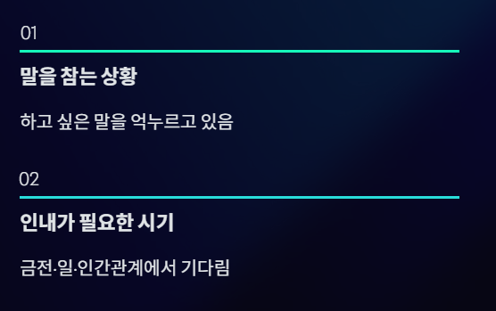 - 금전, 일, 인간관계에서 인내가 필요한 상태