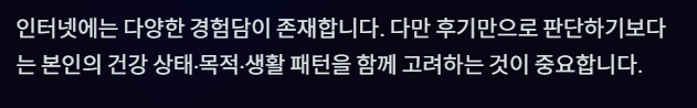 본인의 건강 상태·목적·생활 패턴을 함께 고려하는 것이 중요합니다.