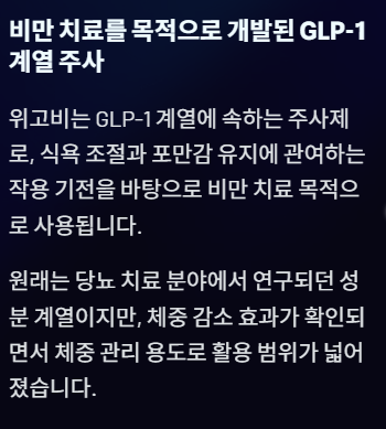 위고비는 비만 치료 목적으로 개발된 GLP-1 계열 주사제로,