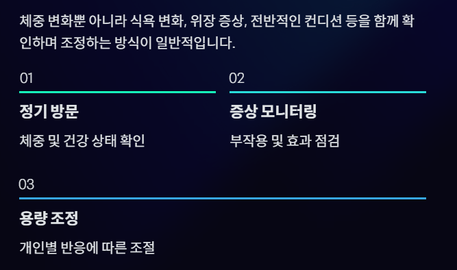 체중 변화뿐 아니라 전반적인 컨디션과 부작용 여부를 함께 보는 것이 중요합니다.