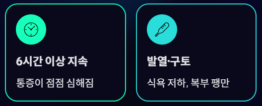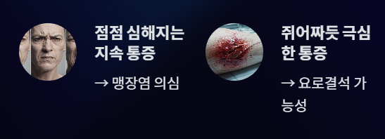 ✔ 점점 심해지는 통증 + 발열·구토·압통 → 즉시 병원 진료 필요