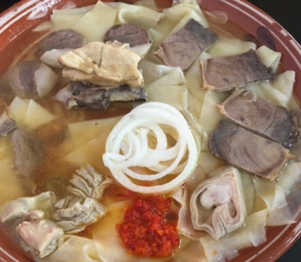 카자흐스탄 대표 전통 요리로, 삶은 고기와 넓적한 면을 함께 먹는 음식입니다.