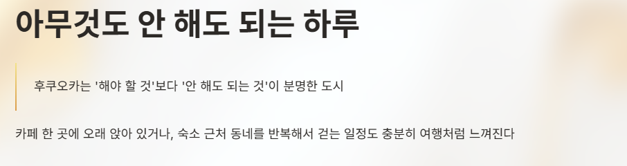 후쿠오카는 일정이 많을수록 좋은 도시가 아니라, 여백이 있을수록 매력이 살아난다.
