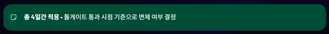 반대로 연휴 기간에 진입했더라도 면제 종료 이후 통과하면 요금이 부과될 수 있다.