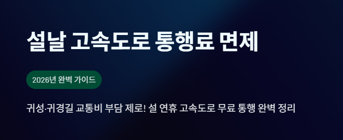 설 연휴 장거리 이동을 앞두고 있다면, 통행료 면제 기간을 정확히 확인해 불필요한 비용 부담 없이 이동 계획을 세우는 것이 좋다.