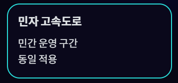 대부분의 민자고속도로에도 동일하게 적용됩니다.
