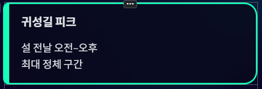 - 귀경길 혼잡 시간: 설 당일 오후~다음 날