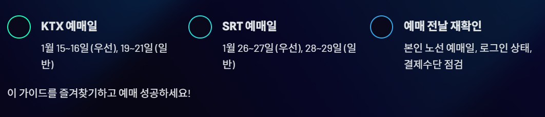 설 연휴 이동 계획이 있다면 이 글을 즐겨찾기 해두고 예매 전날 다시 한 번 확인해보시는 걸 추천합니다.