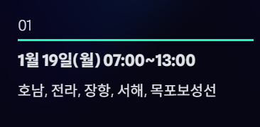 | 1월 29일(목) | 07:00 ~ 13:00 | 홈페이지 | 호남, 전라선 |