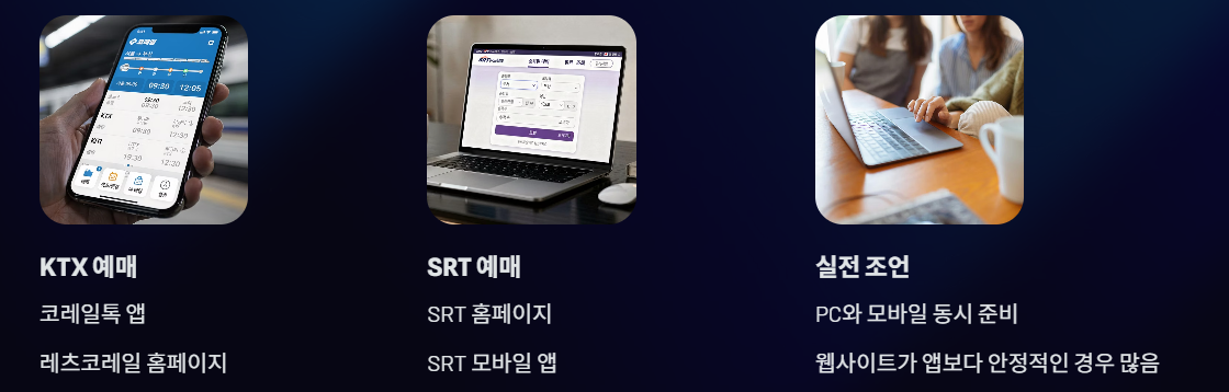 명절 예매는 접속자가 몰리기 때문에 PC와 모바일을 동시에 준비해두는 것이 체감상 가장 성공률이 높았다. 특히 앱보다 웹사이트가 더 안정적으로 접속되는 경우도 많다.