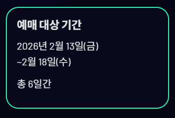 → 2026년 2월 13일(금) ~ 2월 18일(수), 총 6일간