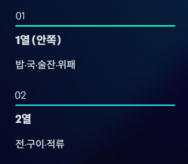뜻만 정확히 이해하셔도 음식 배치가 훨씬 쉬워집니다.