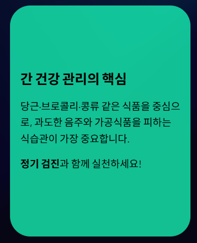 당근·브로콜리·콩류 같은 식품을 중심으로, 과도한 음주와 가공식품을 피하는 식습관이 간 건강 관리의 핵심이다.