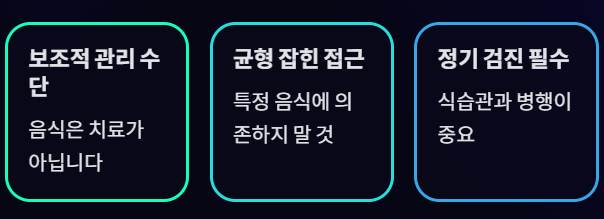 - 음식은 치료가 아니라 보조적 관리 수단