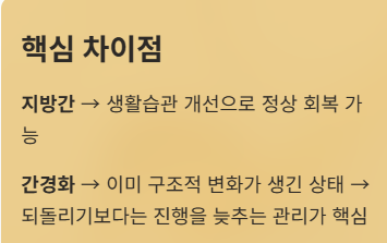 지방간과 간경화는 같은 간 질환이지만 회복 가능성에서 큰 차이가 있다.