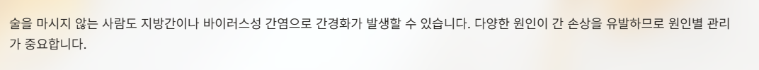 술을 마시지 않는 사람도 지방간이나 바이러스성 간염으로 간경화가 발생할 수 있다.