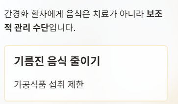 간경화 환자에게 음식은 치료가 아니라 보조적 관리 수단이다.