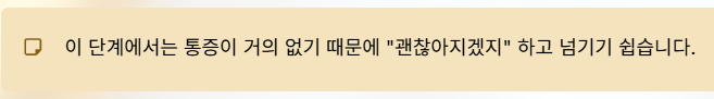이 단계에서는 통증이 거의 없기 때문에 “괜찮아지겠지” 하고 넘기기 쉽다.