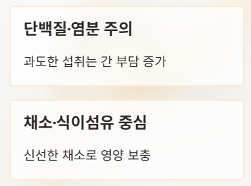 - 과도한 단백질·염분 주의