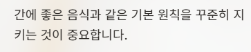 이미 앞서 다룬 간에 좋은 음식과 같은 기본 원칙을 꾸준히 지키는 것이 중요하다.