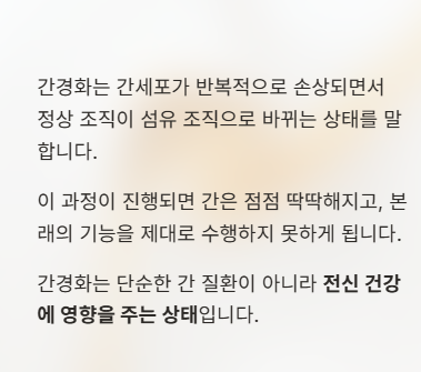 이처럼 간경화는 단순한 간 질환이 아니라 전신 건강에 영향을 주는 상태다.