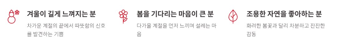 - 개화 시기: 2월 말~3월