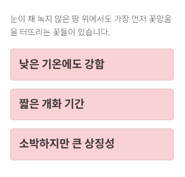 2월에 피는 꽃들의 공통점은 다음과 같다.