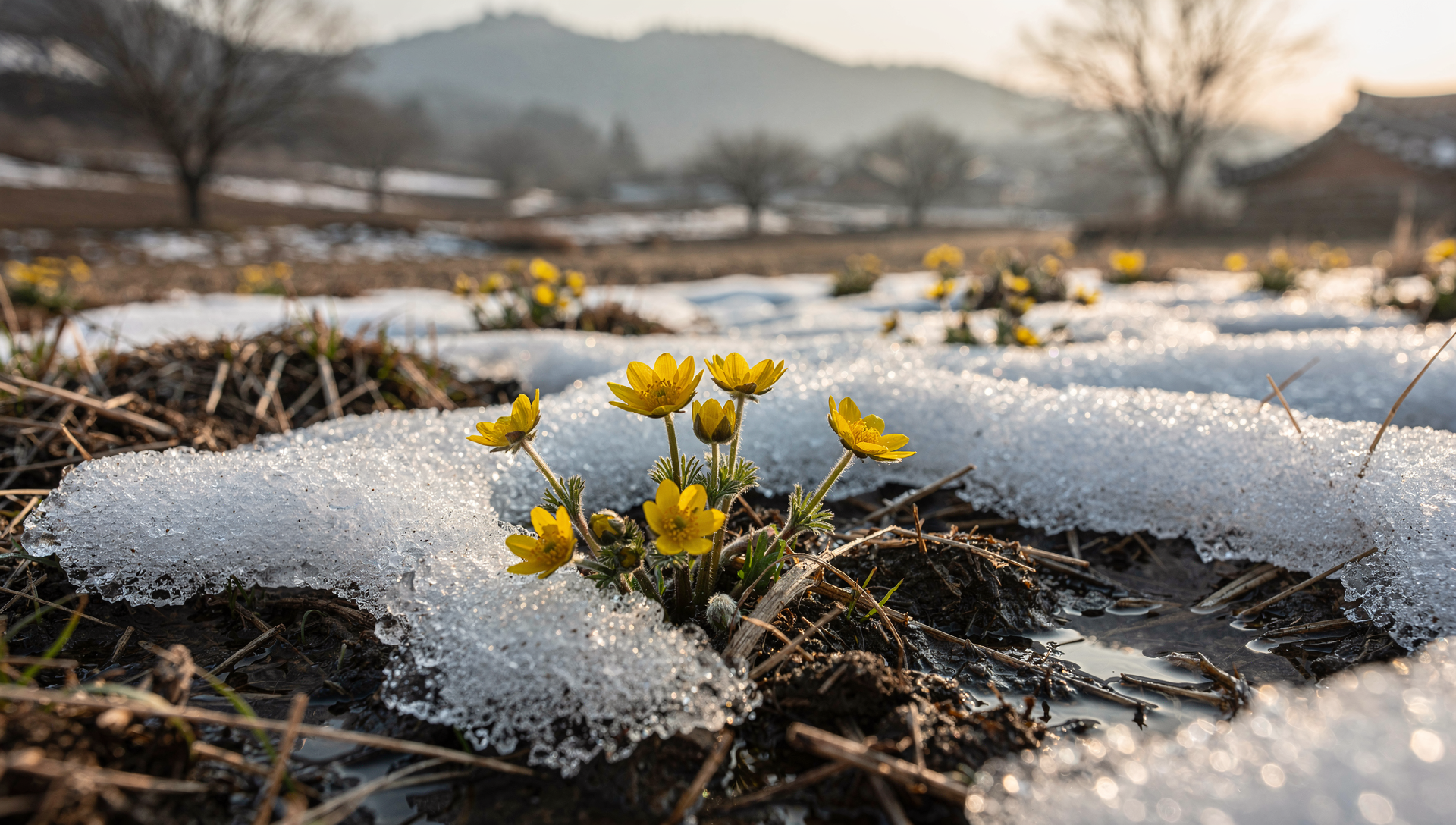 - 특징: 눈 사이에서 피어나는 노란 꽃