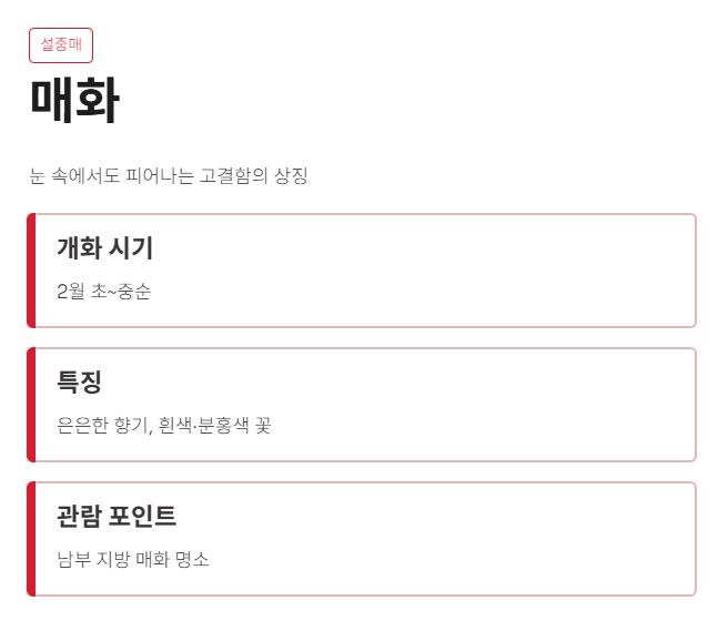 - 관람 포인트: 남부 지방, 매화 명소
