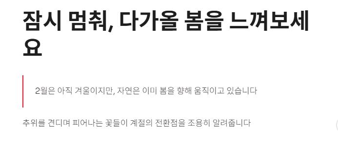 그래서 ‘2월에 피는 꽃’은 단순한 식물 정보가 아니라, 계절이 바뀌고 있다는 신호처럼 느껴진다.