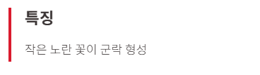 - 특징: 작은 노란 꽃이 군락 형성