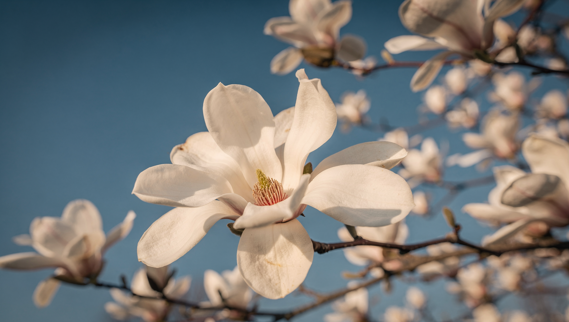 목련은 크고 단정한 꽃잎이 특징이다. 잎보다 꽃이 먼저 피어 존재감이 크다.
