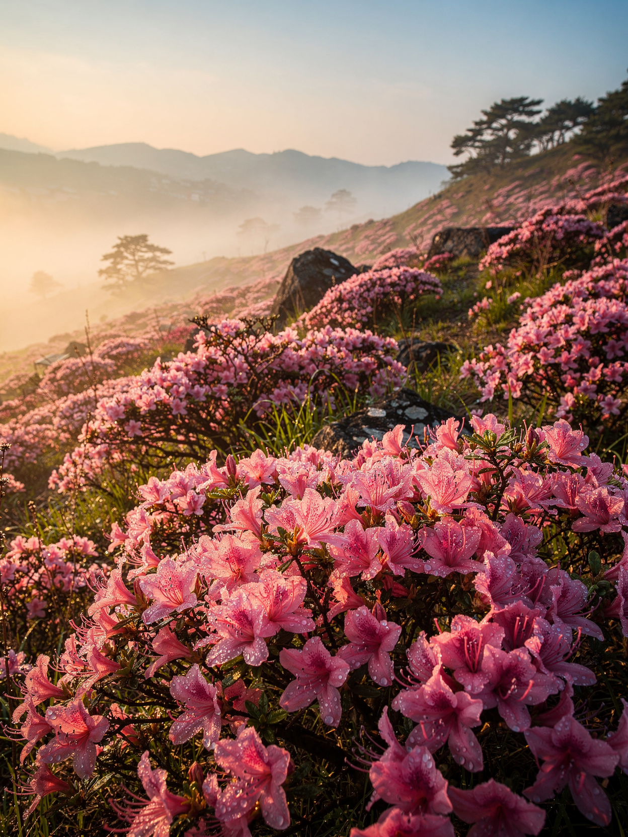 산과 언덕을 중심으로 피는 진달래는 자연스러운 봄 풍경을 만들어낸다.
