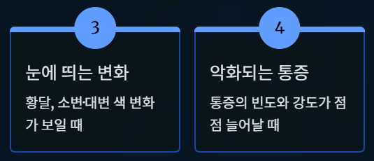 - 황달, 소변·대변 색 변화가 보일 때