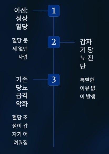 이 때문에 이전까지 혈당 문제가 없던 사람이 갑자기 당뇨 진단을 받거나, 기존 당뇨 환자의 혈당이 특별한 이유 없이 급격히 악화되는 경우가 보고되기도 합니다.