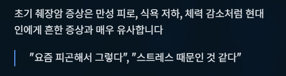 초기 췌장암 증상은 만성 피로, 식욕 저하, 체력 감소처럼 현대인에게 흔한 증상과 매우 유사합니다.