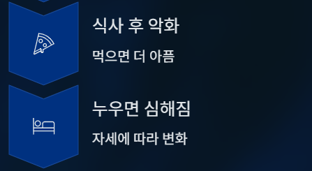 - 통증의 빈도와 강도가 점점 늘어날 때