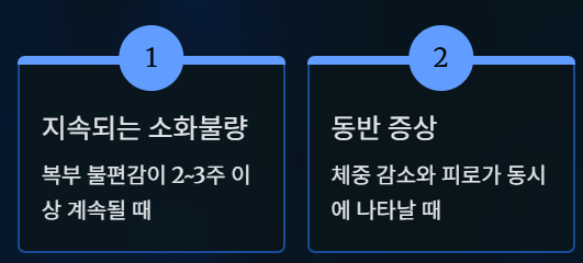 - 소화불량이나 복부 불편감이 2~3주 이상 지속될 때