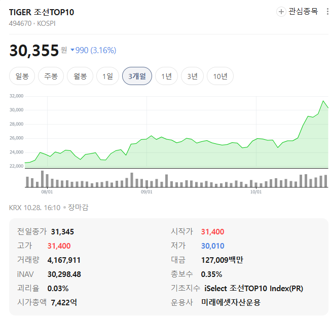 - TIGER 글로벌조선 ETF : 현대중공업·삼성중공업 등 국내 대형주 중심
