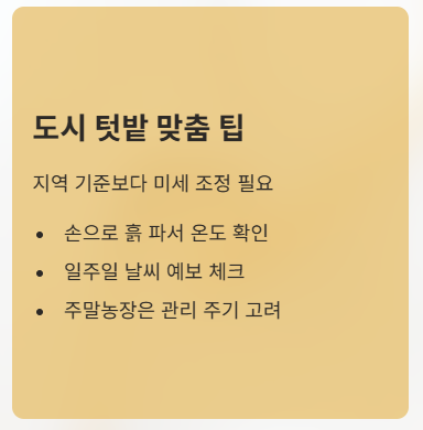 도시 텃밭이나 주말농장의 경우 지역 기준보다 미세 조정이 필요하다.
