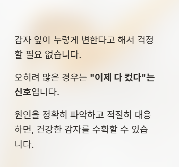 잎이 누렇게 변해도 감자는 괜찮나요?